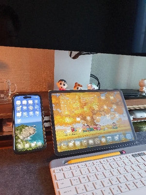 Transform your workspace by keeping your phone accessible and organized next to your screen for multitasking efficiency.